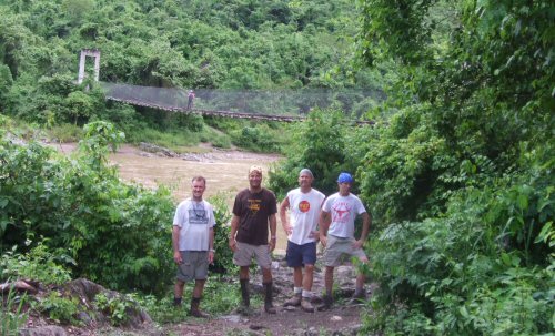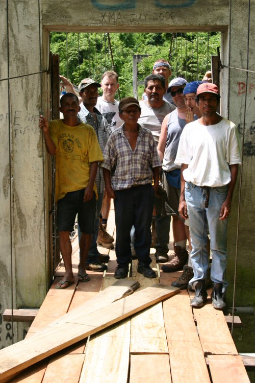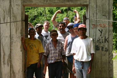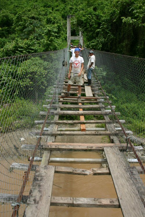 Near the village of La Balsa in Honduras, we rebuilt a 250 feet long suspension bridge that was in very bad shape. This bridge is the only way kids could cross the river to get to their school on the other side. It also connects two parts of the village where XMA had built a church the previous year.